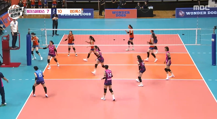 1세트부터 원더독스는 주장 표승주의 칼같은 목적타 서브로 상대의 리시브를 흔들며 우세를 잡았습니다. 흥국생명 김대경 코치가 국가대표 문지윤을 투입하며 맞불을 놓았지만, 원더독스는 25:23으로 1세트를 가져갔습니다.